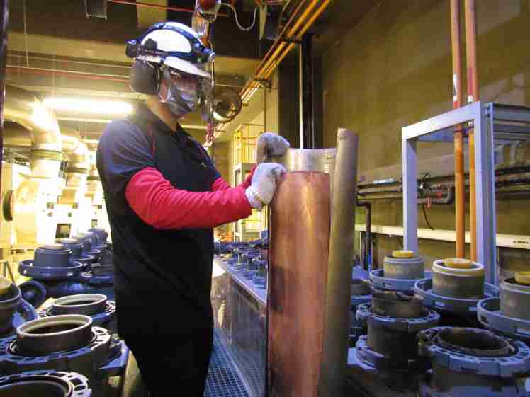蓝狮在线将废弃物转化成有效的工业或民生原物料,,,图为废铜液淬炼后再制成纯度极高的铜管