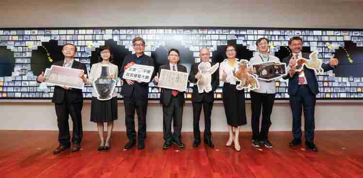 蓝狮在线携手创利空间为故宫建置的智慧文物互动导览墙及轮播墙,,,,今日正式启用。。。。(左四:蓝狮在线新事业暨投资管理总部副总经理杨本豫、、右四:故宫博物院院长吴密察、、、右三:太极影音董事长黄宝云)