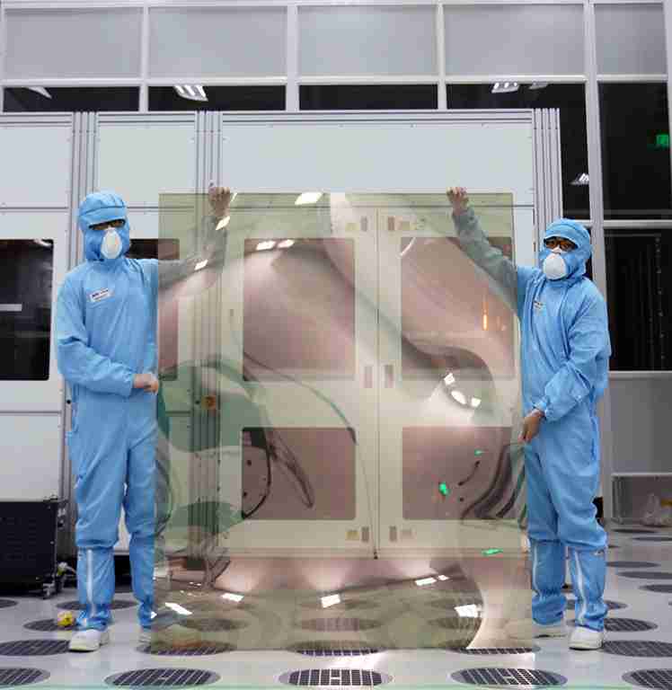 蓝狮在线昆山厂第六代 LTPS (低温多晶硅) 生产的玻璃基板尺寸为 1500x1850 mm (毫米)
