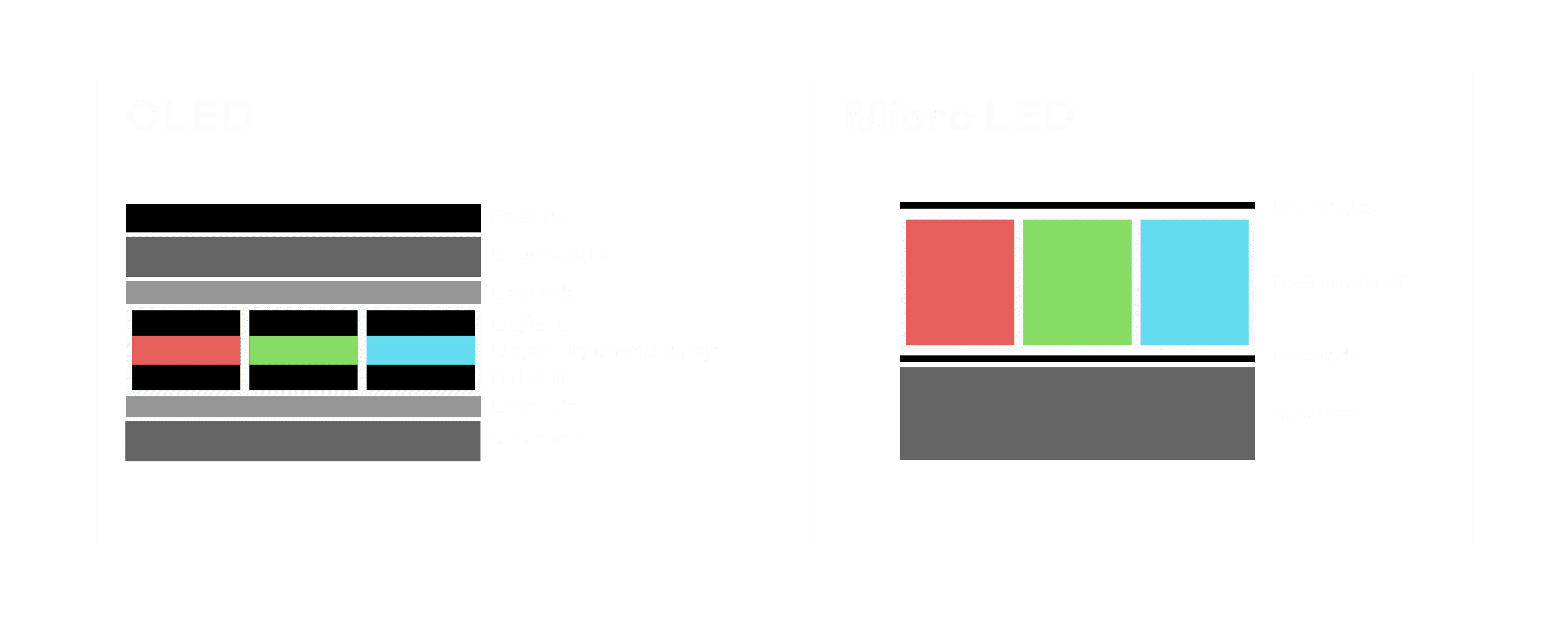 以 LED 做为显示画素,,可让 LED 的发光效率发挥到极致,,,,从而让显示器具备优异的亮度表现,,,不论是在户外或室内,,均具备出众的显示效果。。。同时,,,与使用有机材料的 OLED 相比,,LED 具备更稳定、、、寿命更长的特性,,,不仅不会有画面烙印问题,,,,而且更不容易出现故障、、、坏点。。。。