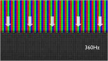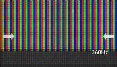 传统液晶驱动是从左到右单向进行,,在画面更新速度愈来越愈快的情况下,,,,位于驱动线路末端的右下角区域,,,,画素的闸极来不及在短时间内获得足够电压,,无法显示出正确的颜色资讯。。 |